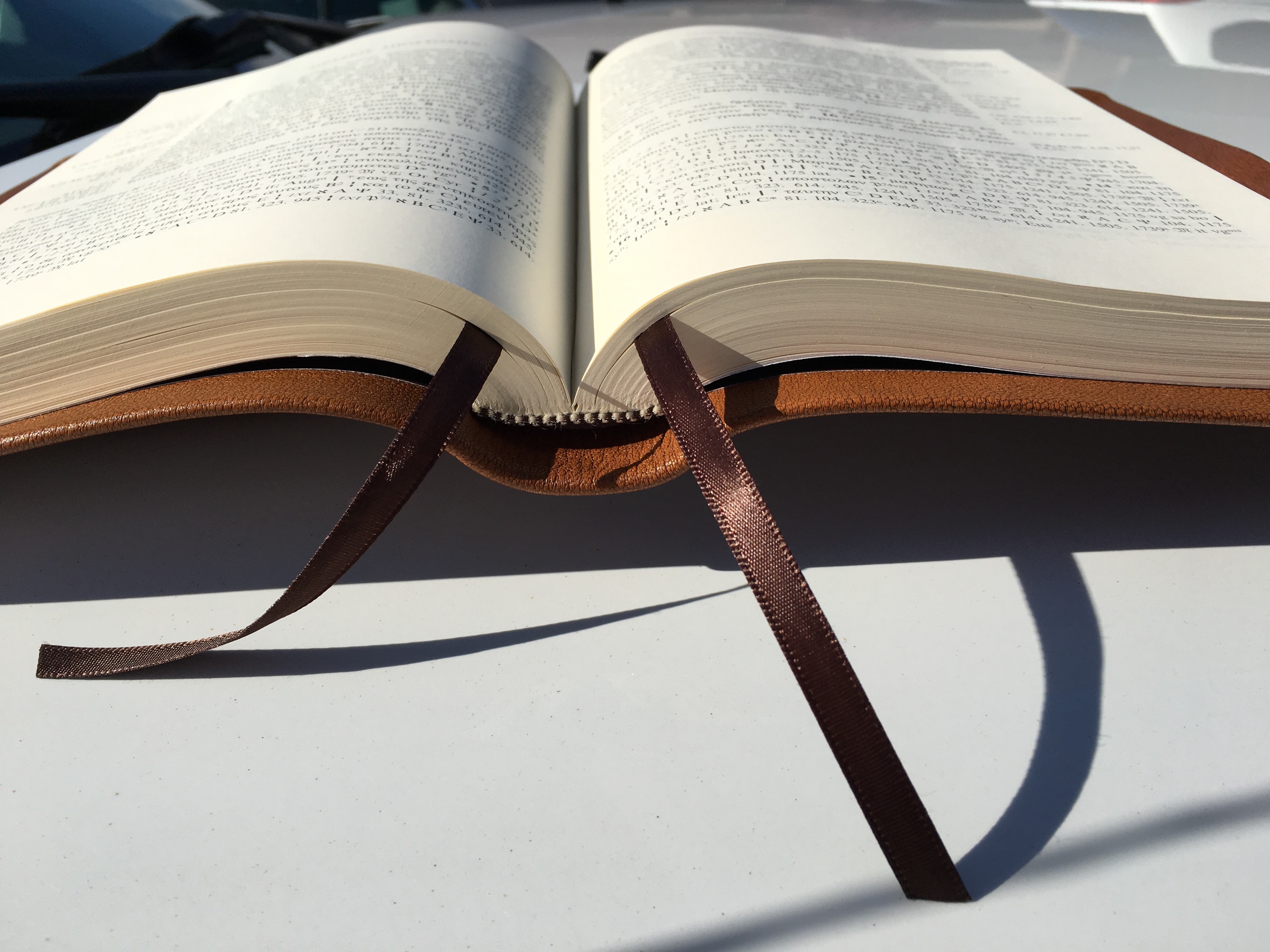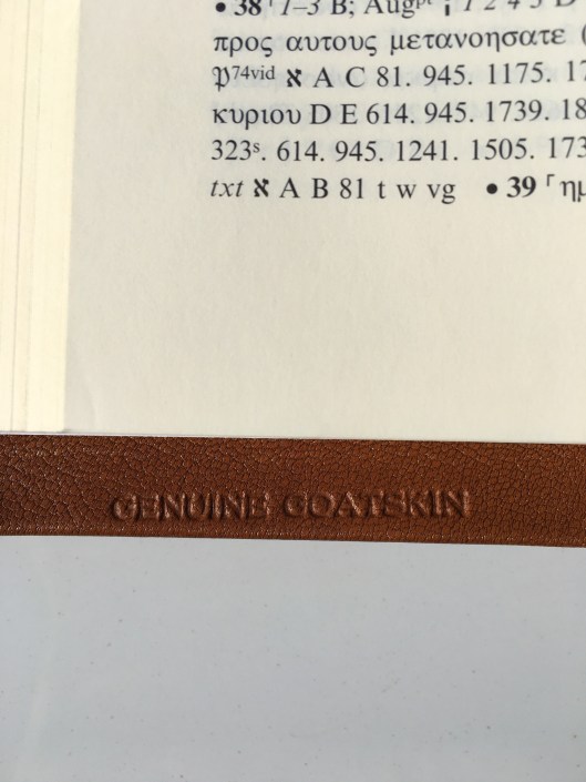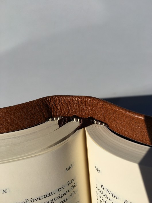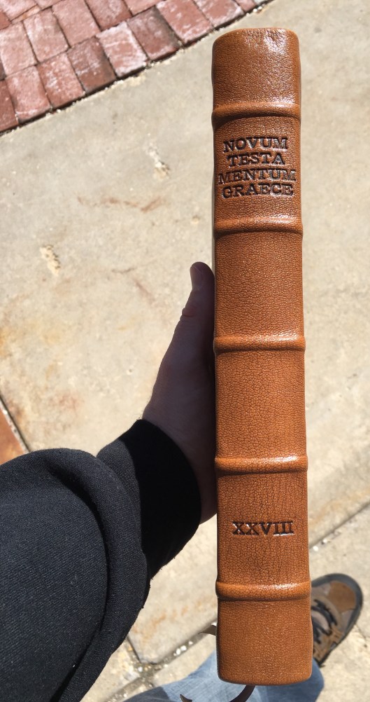 I recently sent my Large Print Greek New Testament (Nestle-Aland 28th edition) off to Leonard’s Book Restoration Station for a custom rebinding. Just got it back and I couldn’t be happier with the finished product.