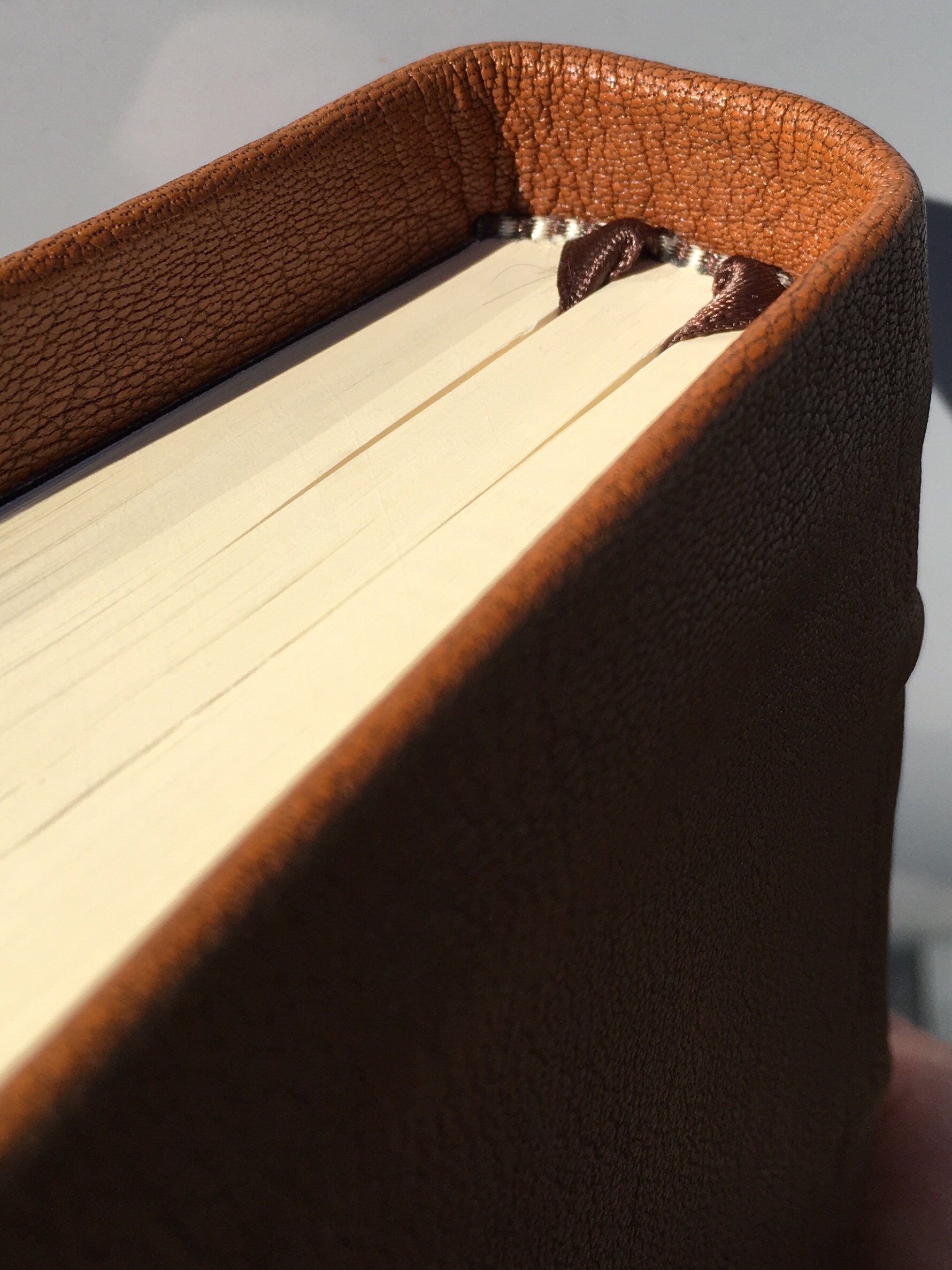Before sharing a some pics of Leonard’s excellent workmanship I want to say a few things about why I believe it is worth investing some money in a good quality copy of Holy Scripture. In other words, when someone says he or she doesn’t agree with spending lots of money on Bibles, how do I reply? Personally, I do not insist that everyone should have an expensive Bible. If someone is content with their $15 pocket NT I have no problems. Unfortunately, when people protest to spending lots of money on a Bible there is usually an implicit assumption that we shouldn’t spend lots of money on a Bible, sometimes with the suggestion that our money could be put to a better (more pious) use. Apart from the fact that this seems strangely similar to the complaint of Judas Iscariot when a woman poured expensive perfume on Jesus (John 12.3-8), the following are several reasons why I think a good quality Bible is worth a pretty penny: